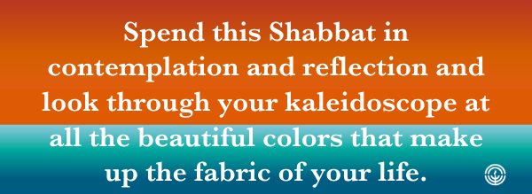 Spend this Shabbat in contemplation and reflection and look through your kaleidoscope at all the beautiful colors that make up the fabric of your life.